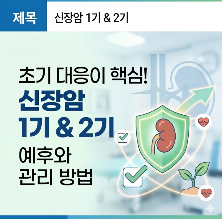 치료는 부분 신절제술 또는 근치적 신절제술이 고려될 수 있으며 종양 위치 크기 신장 기능 상태에 따라 달라집니다. 조기 발견 시 치료 선택 폭이 넓고 비교적 예후가 좋은 단계로 평가됩니다.